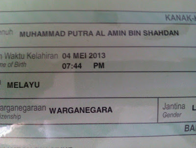 Muhammad Putra Al Amin b. Shahdan ... 04/05/2013, 7.44mlm ... Boy ... 3.19kg ...